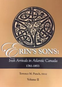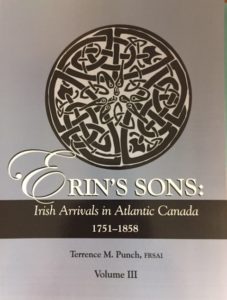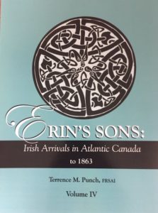 The Guysborough Historical Society recently purchased Terrence M. Punch’s 4 volumes titled Erin’s Sons: Irish Arrivals in Atlantic Canada. Volumes I and II cover the years 1761 – 1853, Volume III encompasses 1751 – 1858, and Volume IV up to 1863. These volumes were written using a variety of sources to identify as many Irish pioneers in Atlantic Provinces of Canada as possible and disclose where they came from in the Old Country. These volumes are available in our research room during regular hours for those seeking to discover more about the Irish settlers who came to and through Atlantic Canada in those years.